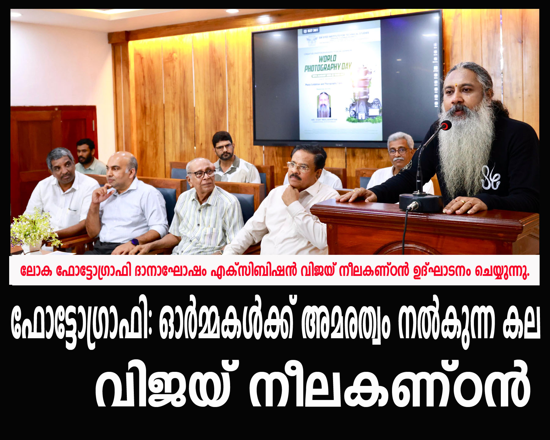 ക്രീയേറ്റീവ് ഫോട്ടോഗ്രാഫേഴ്സ് ഫോറം ലോക ഫോട്ടോഗ്രാഫി ദിനത്തോടനുബന്ധിച്ച് തളിപ്പറമ്പ് സര് സയ്യിദ് ഇന്സ്റ്റിറ്റ്യൂട്ടില് ഒരുക്കിയ ഫോട്ടോഗ്രാഫി എക്സിബിഷന് ഉദ്ഘാടനം ചെയ്ത് സംസാരിക്കുകയായിരുന്നു അദ്ദേഹം.