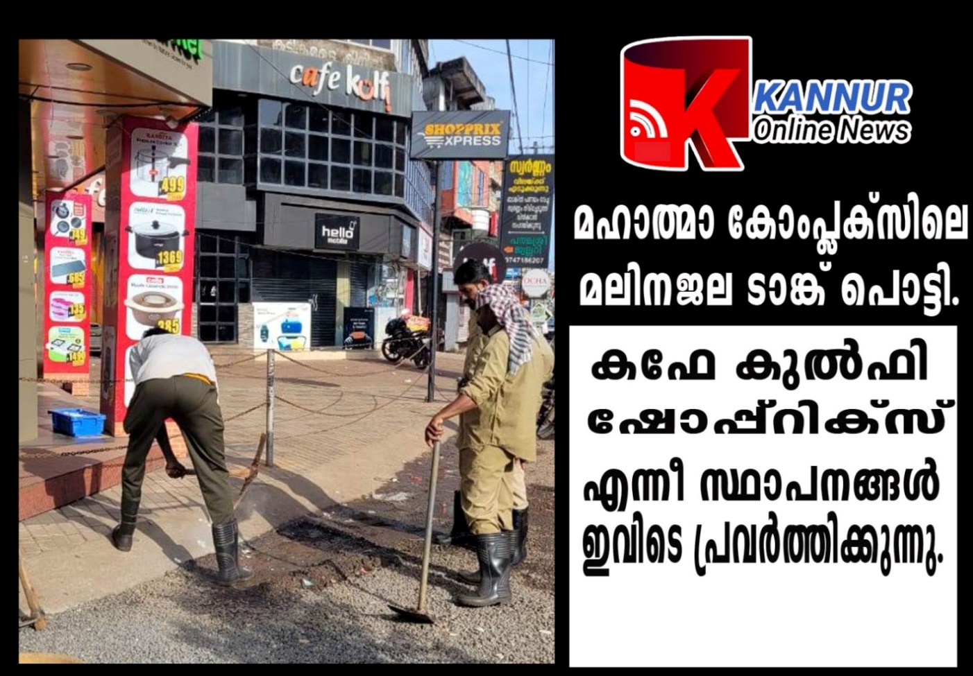 തളിപ്പറമ്പ് മഹാത്മാകോംപ്ലക്സിലെ മലിനജല ടാങ്കാണ് ഇന്ന് രാവിലെ പൊട്ടിയൊഴുകിയത്.
