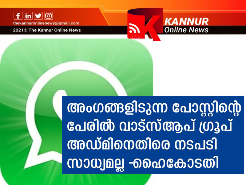 കൊച്ചി: വാട്സ്ആപ് ഗ്രൂപ് അംഗങ്ങള് പോസ്റ്റ് ചെയ്യുന്ന ഉള്ളടക്കങ്ങളുടെ പേരില് അഡ് മിനെതിരെ നടപടി സാധ്യമല്ലെന്ന് ഹൈകോടതി.